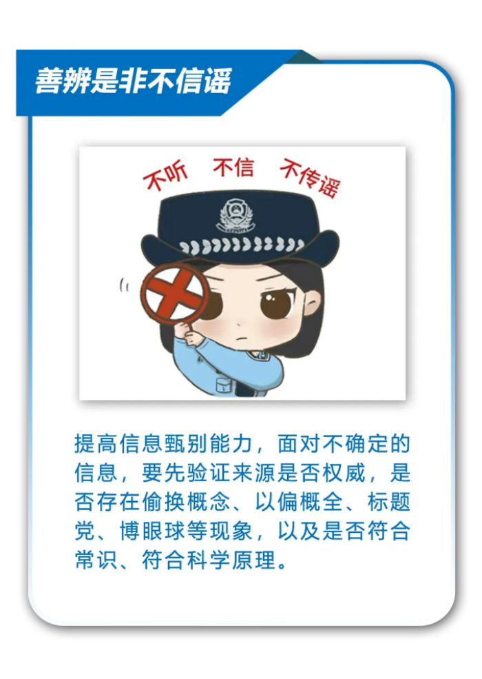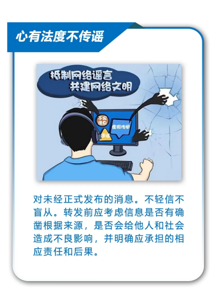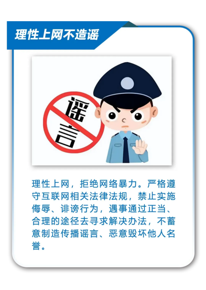 您现在的位置: 首页 > 学校信息 > 校园安全校园安全 【仓山公安提醒】立冬来临,给谣言降降温 发布时间:2024-11-12 //echo ;?> 来源:学生与保卫科点击: 立冬时节,万物收藏。然而谣言却如同冬日里的寒风,刺骨而伤人,需要我们用理性的火炉温暖心灵,用智慧的光芒照亮真相。在这个节气里,网警将与您携手,用智慧抵御谣言的侵袭,用行动守护社会的和谐,让真实与温暖在这个季节里绽放。 互联网不是法外之地,任何人不得利用网络编造、散布、传播虚假信息,请广大网民自觉遵守法律法规,共同营造和谐、清朗网络环境。 素材丨福建网警 上一篇:安全记心间 防范于未“燃”——我校举行2024年第四季度应急疏散演练暨消防安全教育月启动仪式 下一篇:【仓山公安提醒】网警提醒|既享购物盛宴,也要谨防诈骗